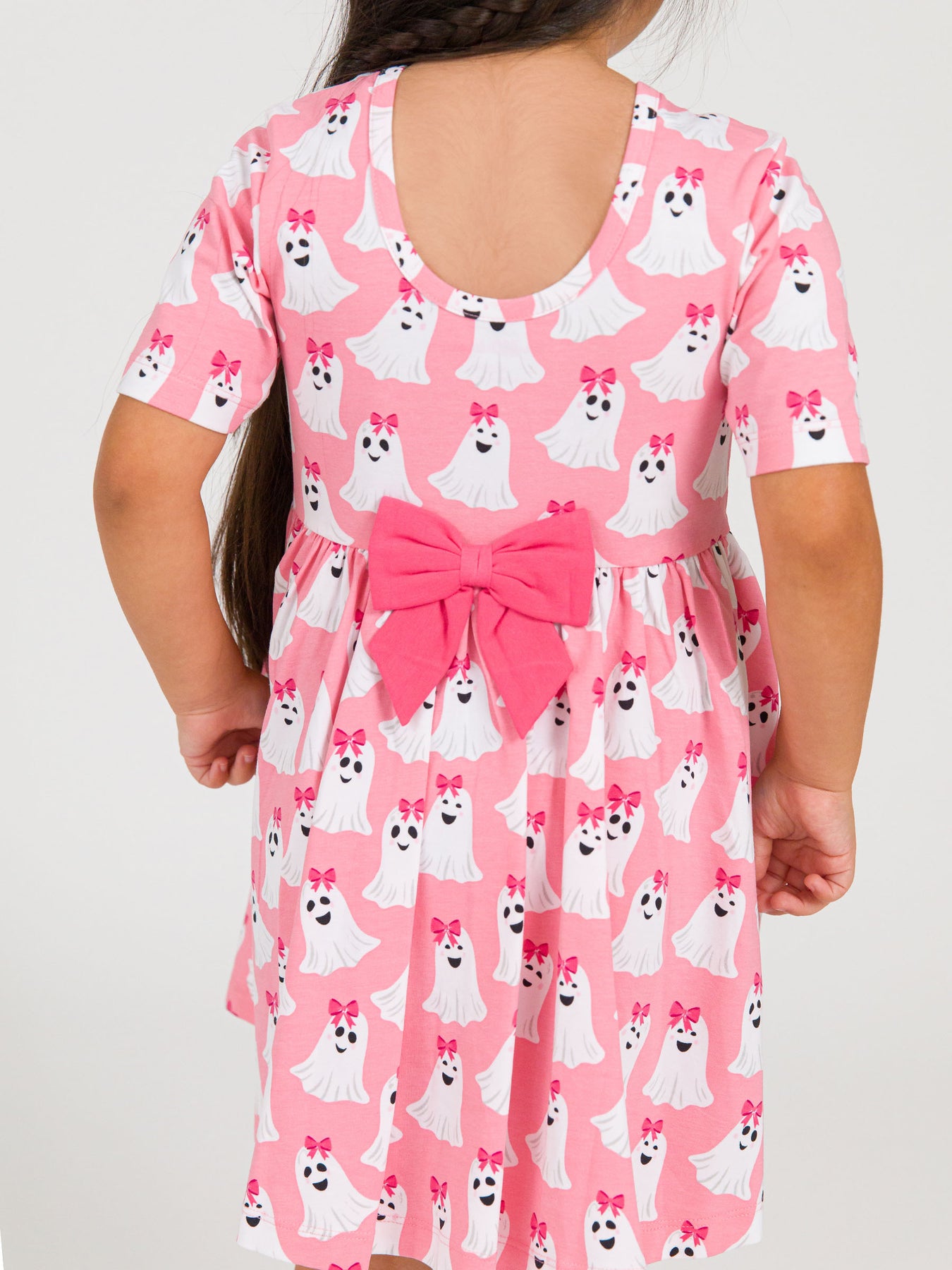 Sweet candy canes and retro-inspired Santas make this print perfect for Christmas and staying cozy during the winter holiday season! Our bestselling long sleeve twirl dress is a must-have addition to any little girl's wardrobe. Crafted from high quality knit fabric, this dress is gentle on skin, ensuring a comfortable fit and easy wear. Functional pockets make it practical, and a sweet bow accent on the back adds the perfect girly touch!
