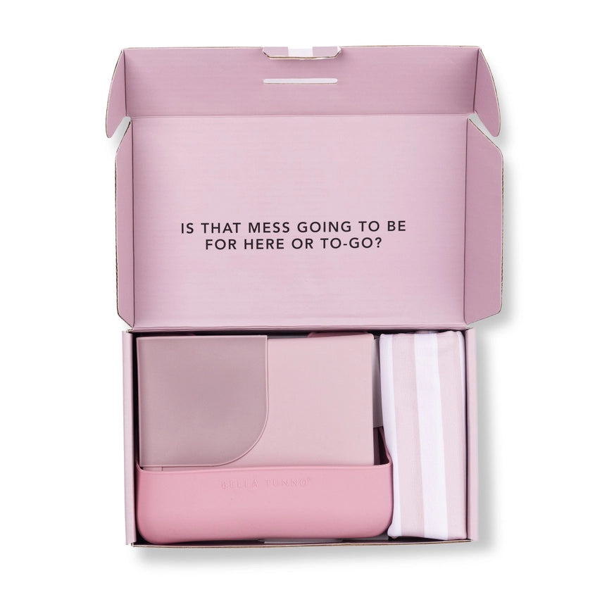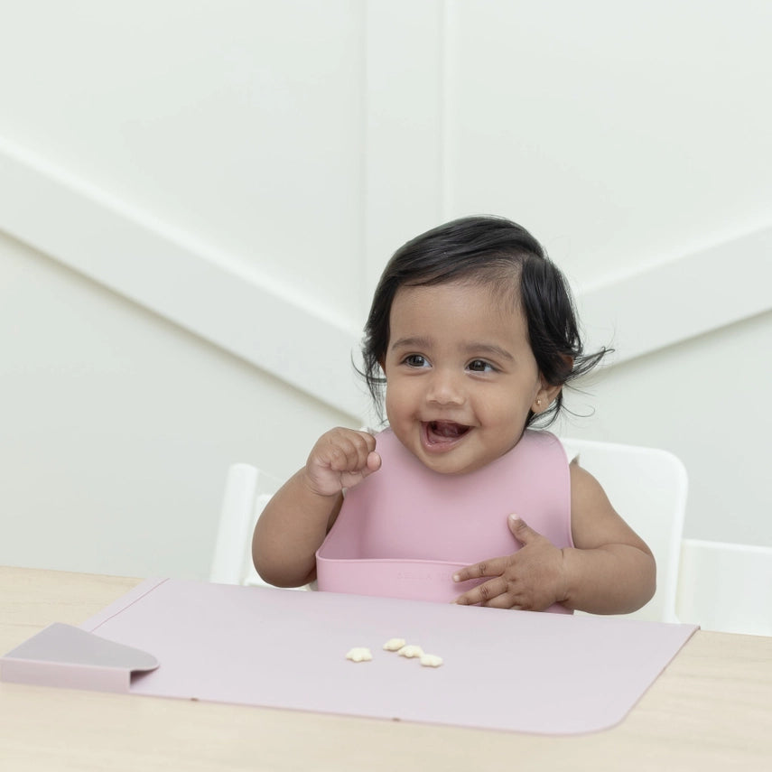 Our expert-approved toolkit of mealtime essentials to take on-the-go! This set is the perfect new baby gift and a parent must-have. Just pack up the bib and placemat in the on-the-go bag, throw in some snacks and meals can happen anywhere. One set includes everything you need: -The silicone Beginner Bib has a narrow body for little arms to easily reach the eating surface and food. -The Wonder Mat is the first-of-its-kind foldable placemat with Table Guard technology, a 2" flap to cover the front of the eating surface and keep the entire eating area both clean and protected. -The waterproof Wet Bag has a front zipper pocket for bib + placemat and a back zipper pocket for food and snacks. -Bib (10" x 7") and Placemat (15" x 12"): Non Toxic Food Grade Silicone. FDA Approved and Free of BPA, PVC, Phthalates. Dishwasher safe. -Wet Bag (8.6" x 10.2"): Polyester. Machine washable.