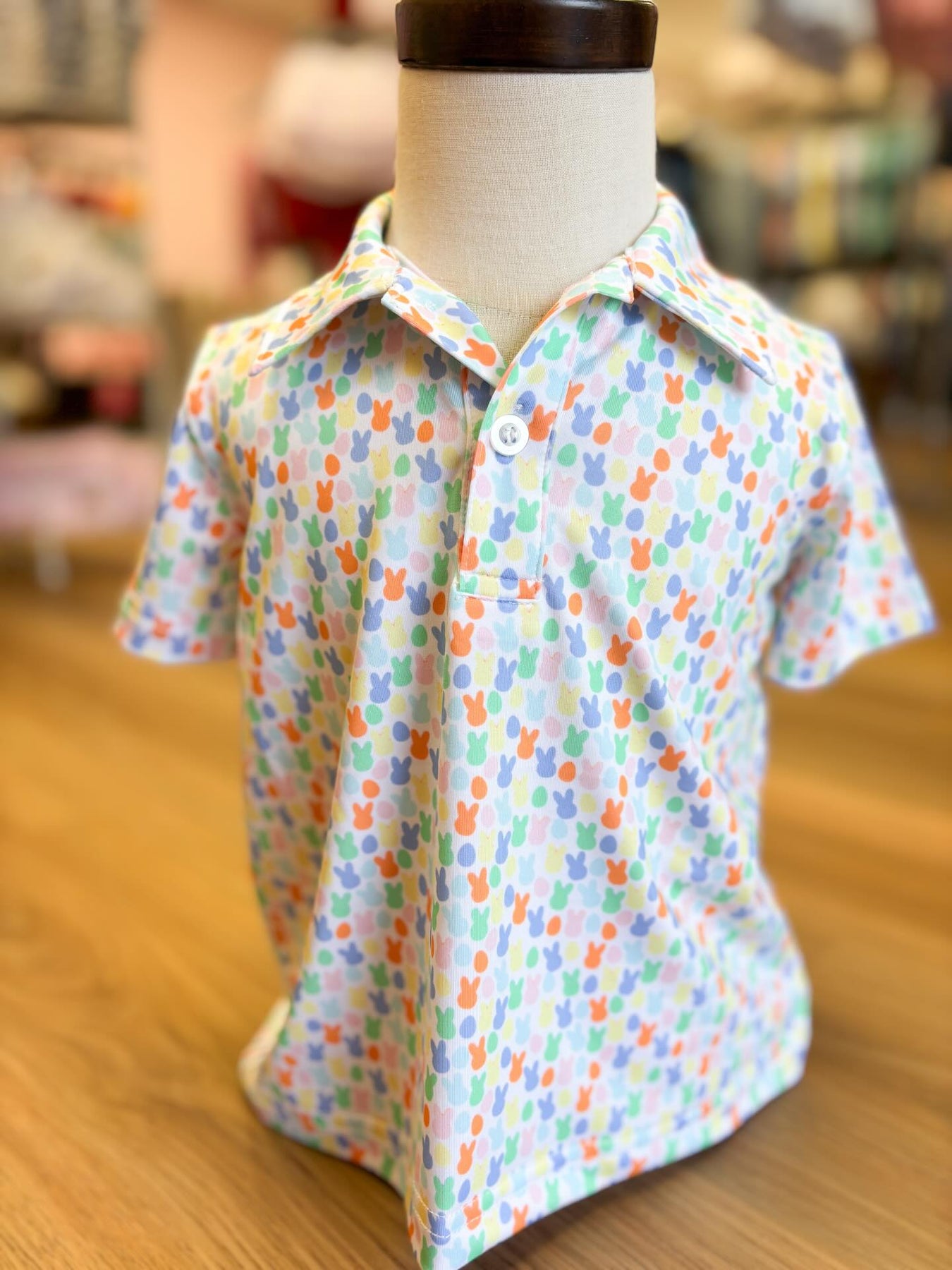 Boys Hoppy Eggs Knit Short Sleeve Performance Polo