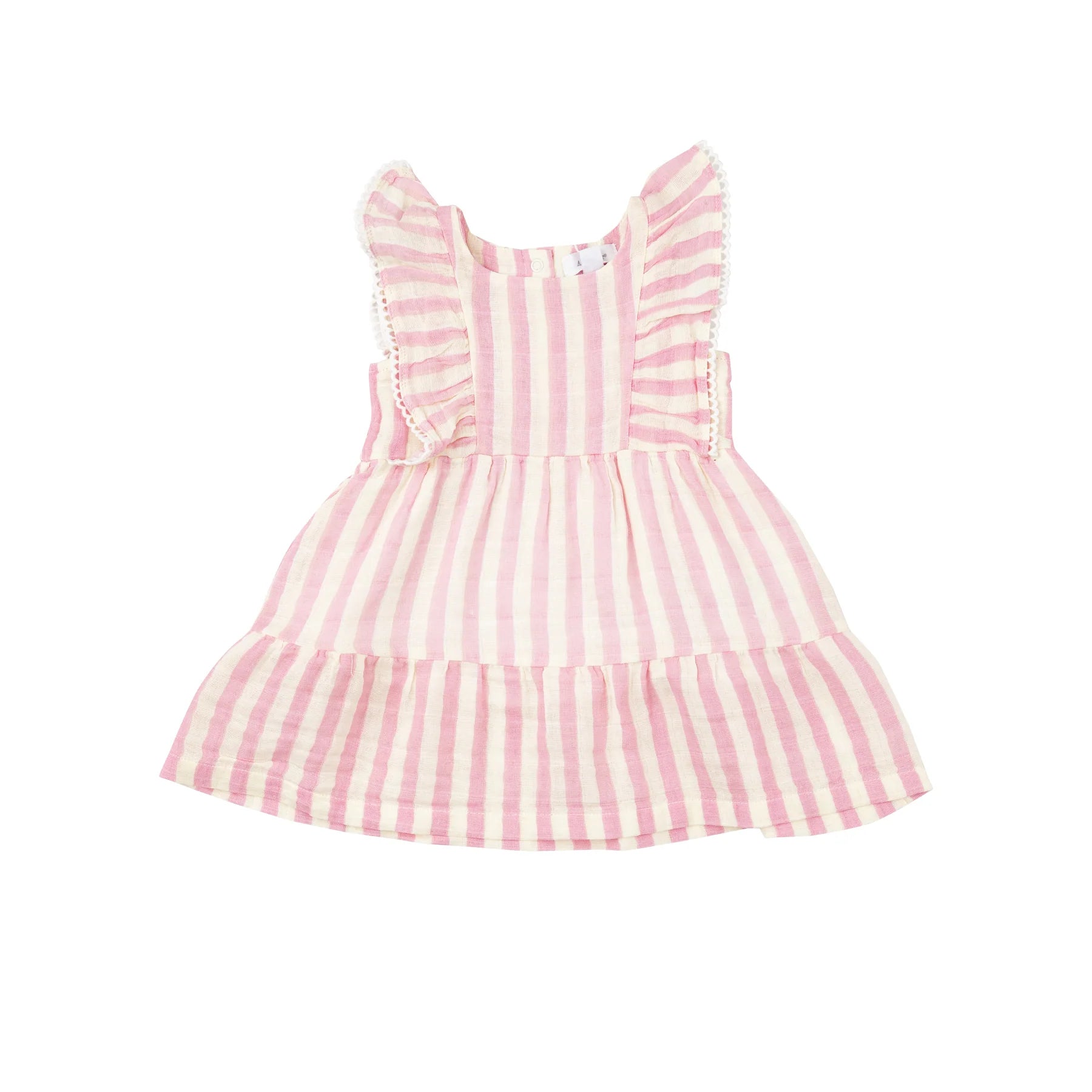 ANGEL DEAR PINK STRIPE PICOT EDGED DRESS