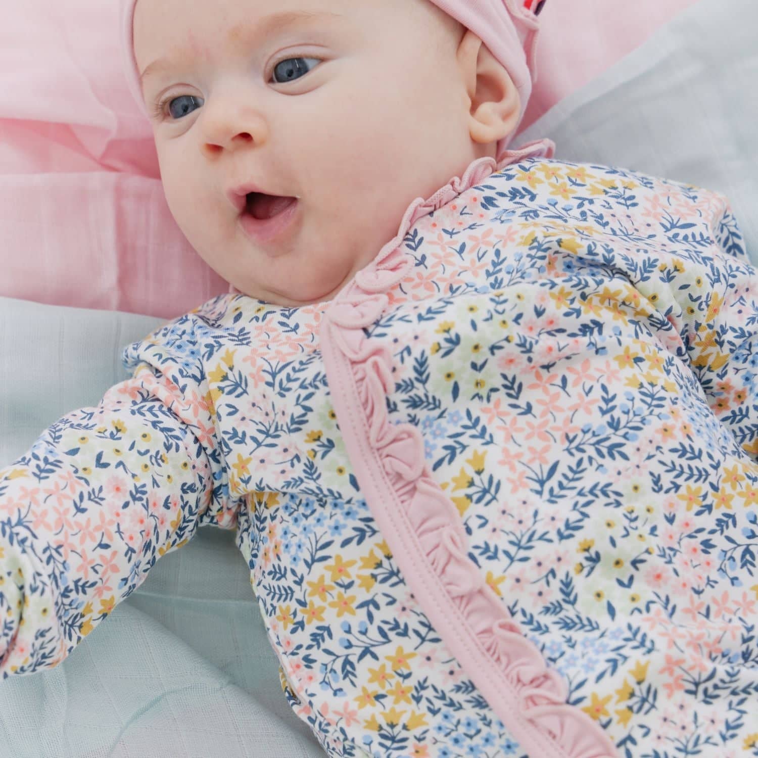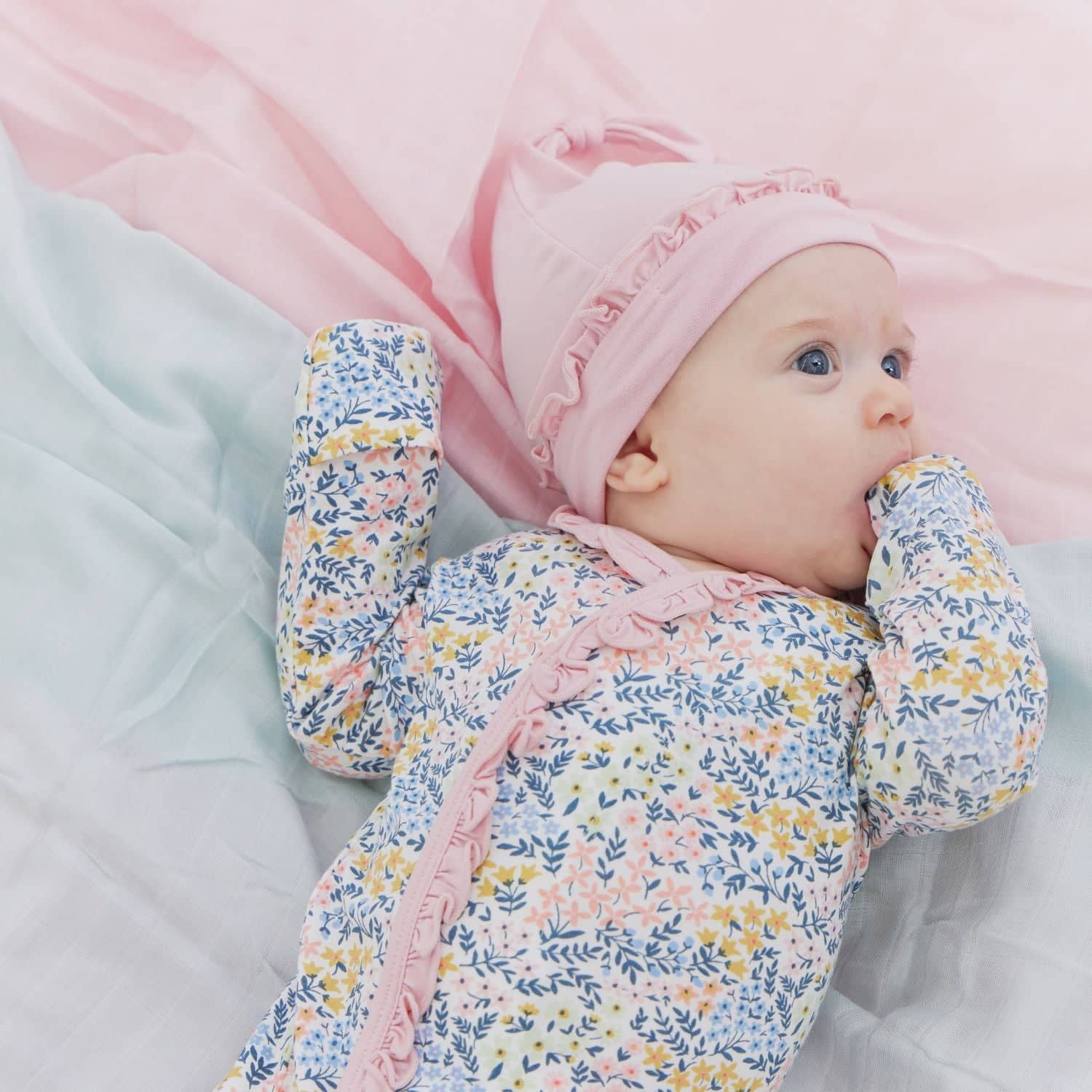 the cozy sleeper gown + hat set is a wardrobe staple for newborns who require constant diaper changes (aka all of them). with magnets down the front, baby stays in the gown during the diaper switcheroo: separate magnets, put on a freshy, click magnets, done. other amazing features: eco-friendly TENCEL™ modal fabric and built-in mitten cuffs.