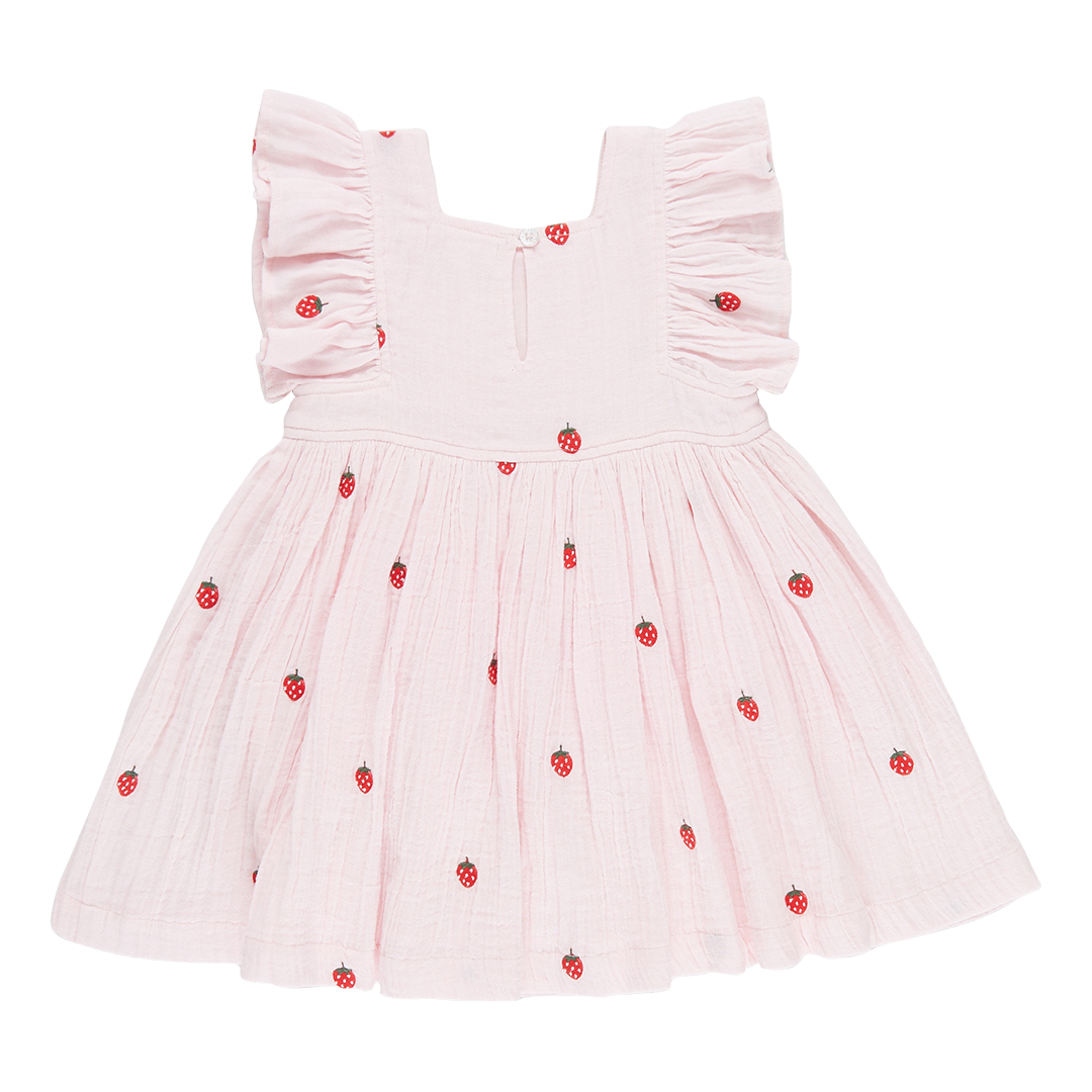 Girls Elsie Dress - Strawberry Embroidery