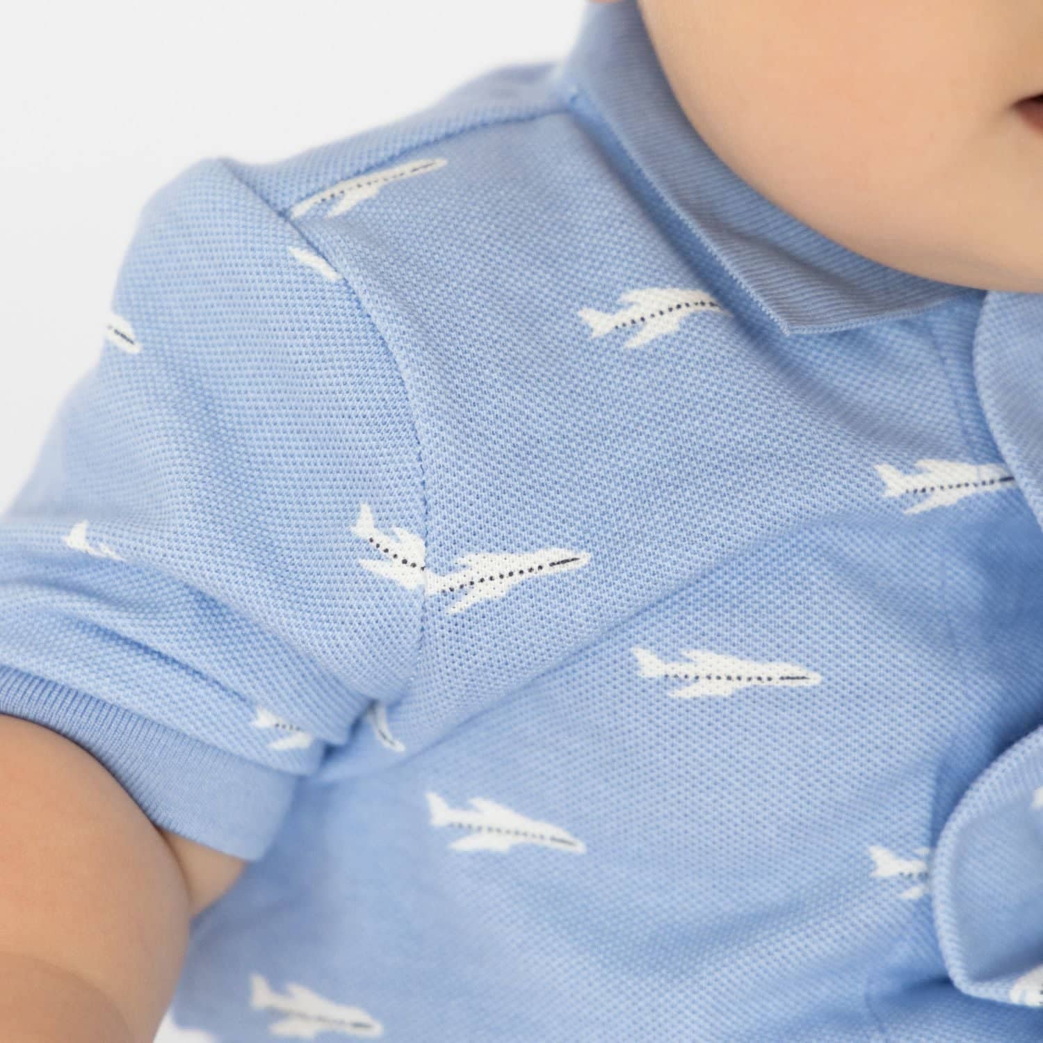 Schiffli Pique Organic Cotton Magnetic Short Sleeve Romper - Airplane